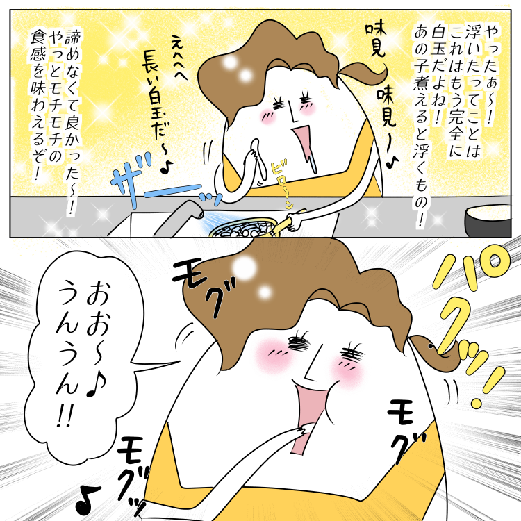 白玉が食べたかった話② 2021年11月01日 すごくゴゾゴゾしたうどんだった。「作りたいのは白玉だけど食べたいのは不味めのうどんなのよね…」と悩んでいる方がいましたらぜひ作ってみて下さい! 「日常漫画」カテゴリの最新記事 タグ :#まむ#アホ#料理 < 前の記事次の記事 > コメント このブログにコメントするにはログインが必要です。 さんログアウト この記事には許可ユーザしかコメントができません。 コメントフォーム 名前 コメント 記事の評価 リセット リセット 顔 星 情報を記憶 コメントを投稿する