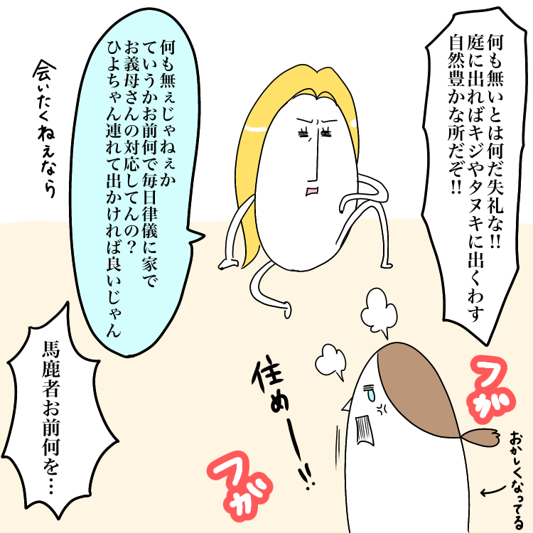 お義母さんといっしょ 21 2021年11月02日 ↓前回のお話 監禁されてる人の精神かな?敷地内同居を始めてから毎日かかさず朝から晩までお義母さんが我が家に滞在してたから「お義母さんが来るから家にいないと」と一人で勝手に脳にすり込んでしまっていたようです。ひよちゃんとお庭の散歩はしてたよ!(もちろん義母付き)そしてゆんず君(夫)はこの頃仕事が激務なのと夜勤も加わり生活リズムの違いであまりお話が出来ない時期でした。↓次のお話 【楽天ランキング1位】シャンプー & トリートメント 500ml & 500ml ボトル セット 無添加 ノンシリコン スムース モイスチャー スカルプ オルナ オーガニック ALLNA ORGANIC価格:3870円(税込、送料無料) (2022/1/9時点)楽天で購入 「お義母さんといっしょ」カテゴリの最新記事 タグ :#まも#まむ#義母#義両親 < 前の記事次の記事 > コメント コメント一覧 (3) 1. Amy 2021年11月02日 05:22 逃げていいんだ!逃げるんだ! 義母という魔物から…! 0 まむ がしました 2. まぶり 2021年11月02日 07:44 妹さん、心強い!第三者からの意見て重要ですねー🤫 0 まむ がしました 3. ぽよ母 2021年11月02日 09:52 これは、、、救世主現る、なのでは?!?! 妹さーーん!正論でーす!!!wwww お姉さんを気遣ってくれて優しい💕 0 まむ がしました このブログにコメントするにはログインが必要です。 さんログアウト この記事には許可ユーザしかコメントができません。 コメントフォーム 名前 コメント 記事の評価 リセット リセット 顔 星 情報を記憶 コメントを投稿する