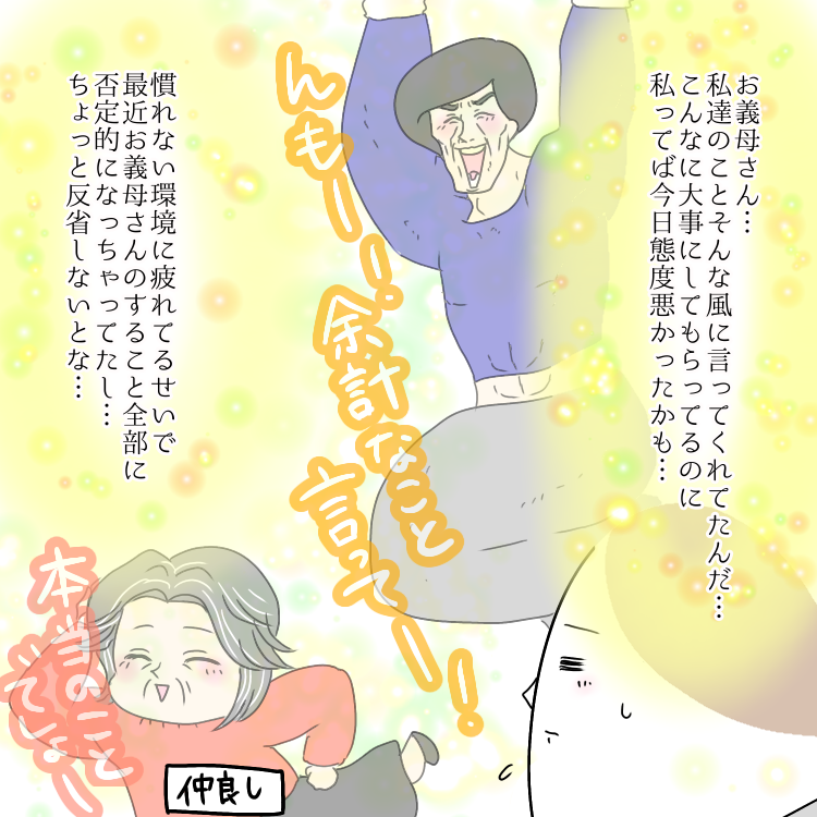 お義母さんといっしょ 24 2021年11月08日 ↓前回のお話 牛の所へはこの後ちゃんと連れて行ってくれました。私が神経質なのかもしれないけど知らない人が娘の写真を持ってるのは嫌なんだ。怖いよね。うちの娘の写真を一体何人の見知らぬマダムが受け取ったのだろう。お義母さん友達多いからきっと結構な人数。 ↓次のお話 【楽天ランキング1位】シャンプー & トリートメント 500ml & 500ml ボトル セット 無添加 ノンシリコン スムース モイスチャー スカルプ オルナ オーガニック ALLNA ORGANIC価格:3870円(税込、送料無料) (2022/1/9時点)楽天で購入 「お義母さんといっしょ」カテゴリの最新記事 タグ :#義両親#義母#まむ#おでかけ#ひよ < 前の記事次の記事 > コメント コメント一覧 (7) 1. はむ 2021年11月08日 02:02 お義母さん…もう、やめて… 0 まむ がしました 2. まむさん頑張って 2021年11月08日 11:46 お義母さぁぁぁん!!!(血涙)自分も知らない人に写真回されるの嫌ですううう!!!神経質じゃないと思う! 0 まむ がしました 3. りあゆ 2021年11月08日 14:21 遊びに来たお友達に写真を見せたりするのは良いけどLINEとかに載せて見せちゃうのは駄目だよね。どんな形で、転載されるか判らないしね。その辺婆連中意識低いから困りますよね… 0 まむ がしました 4. でも 2021年11月08日 20:46 自分はこうして漫画とはいえ同意もなくプライベートを不特定多数に晒してますやん… っていうツッコミは野暮ですか? 0 まむ がしました 5. みこらす 2021年11月08日 23:13 お義母さんのパンチをヒラリとかわす渡部さん ・・・只者ではないな 0 まむ がしました 6. シルク 2021年11月09日 05:24 知らないうちに写真公開とか怖すぎる…。 子供はもちろん、背景に何が写り込んでるか…家の中見られてしまうのも嫌だなぁ(T-T) 0 まむ がしました 7. え? 2021年11月20日 09:47 >>4 写真と絵は違いません?別の話ですよ。まして子供の写真です。写真を受け取った誰かからまた別の誰かに渡って悪用されないとも限りません。義母さんがまむさんに許可をとったのならまだしも、親として心配なのは当然です。 0 まむ がしました このブログにコメントするにはログインが必要です。 さんログアウト この記事には許可ユーザしかコメントができません。 コメントフォーム 名前 コメント 記事の評価 リセット リセット 顔 星 情報を記憶 コメントを投稿する