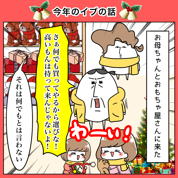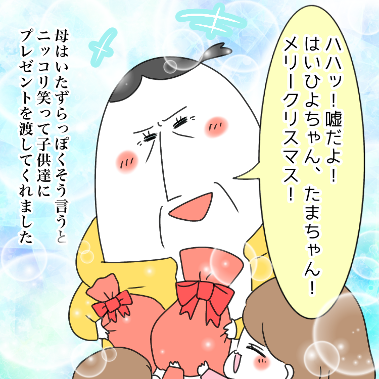 今年のイブの話 2022年12月26日 ※私が子供の時からこれ。 キャラクター達に何の恨みがあるというんだ。このあときちんとお礼をさせました。うちの子達ってば振り返りもしないんだもの。次女に至ってはお礼ですらなかった。子供ってもらったらハイ終わりみたいな現金なとこあるよね。(あると言って)💕🌝まむ母のオススメのお話はこちら🌝💕 一日遅れてしまいましたがメリークリスマス🥰🎉💕!皆様の冬休みがスペシャルHappyでありますように🥰🎂🥂❤️❤️❤️読んでくださってありがとうございました🥰🙇♀️!🐣ブログの更新が届くよ🐣登録して頂けるととっても嬉しいです🥺🙏💕\バター醤油で食べたい/【ふるさと納税】14-22 オホーツク産ホタテ玉冷大(1kg) |ホタテ ほたて 帆立 貝柱 貝 冷凍 1kg 1000g 特大 大粒 大玉 大きい 刺身 バター焼き 魚介類 魚介 海鮮 海鮮食品 グルメ 食品 通販 返礼品 ギフト ふるさと納税 故郷 納税 北海道 紋別市 紋別 オホーツク海価格:14000円(税込、送料無料) (2022/12/26時点)楽天で購入【1枚1,700円!クーポン利用で】レディース 体型カバー ウエストゴム 秋 冬 裏起毛 パンツ ワイドパンツ ボトムス ストレッチ リブ コーデユロイ 保温 厚手 カジュアル 通勤 オフィス ママ SAISON DE PAPILLON sdpalhj01価格:3900円(税込、送料無料) (2022/12/26時点)楽天で購入 「日常漫画」カテゴリの最新記事 タグ :#まむ#たまちゃん#ひよちゃん#お母ちゃん < 前の記事次の記事 >