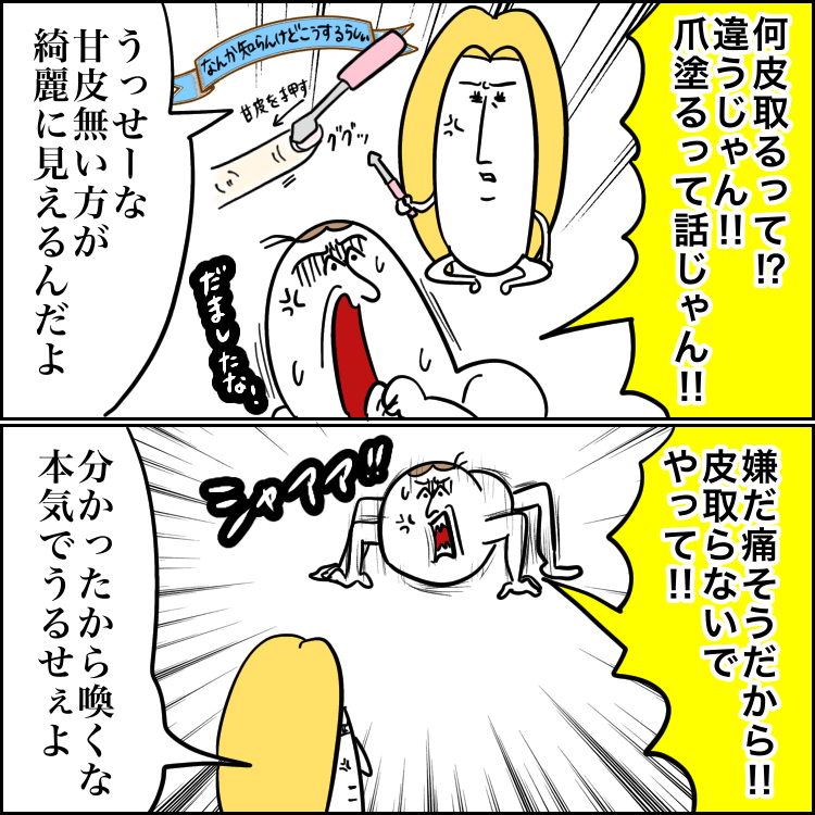 甘皮取るだの爪削るだの知らないんですけど。
