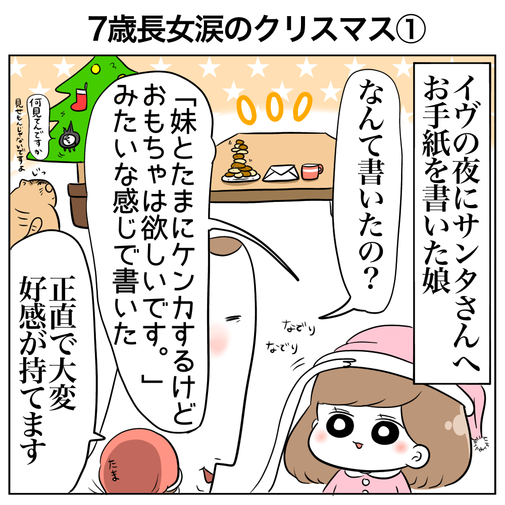 涙のクリスマス① 2024年01月02日 ⚠️サンタさん注意!!⚠️大人のみぞ知るクリスマスの内部事情に触れるよ!サンタさんアイスか何かなの?サンタさんは恥ずかしがりやだからとかもう少し上手いこと言ってくれよ。(自分)急に聞かれて焦ったのとなんかもうちょっと眠かったのもあってゴミみたいな言い訳をしてしまいました。②に続きます🎄 読んでくださってありがとうございました🥺🙇♀️✨!!🎉イベント漫画🎉 \アプリで読者登録!/ブログ更新と同時に通知が届くよ!【あす楽対応 全国送料無料】ハロウィンの駄菓子も入った!駄菓子 詰め合わせ 100種類 120個 セット おもしろだがし箱入り【業務用 大量 お菓子 駄菓子 詰め合わせ 送料無料 つかみ取り ギフト 個包装 プレゼント お菓子セット 子供 福箱 福袋】価格:4,580円(税込、送料無料) (2023/9/13時点) 楽天で購入 「日常漫画」カテゴリの最新記事 タグ :#まむ#たまちゃん#ひよちゃん#クリスマス < 前の記事次の記事 >