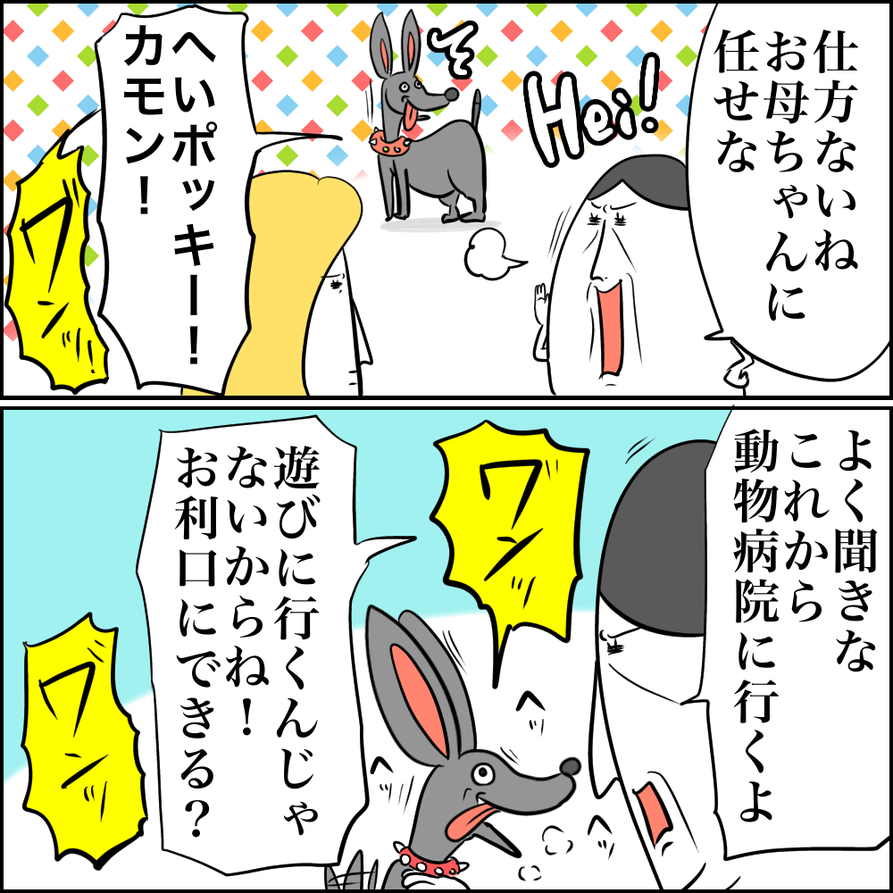 愛犬を信じた結果 2024年01月26日 母の方が受診が必要な状態で帰ってきた。ポッキーはゲージをぶっ壊した後「よっしゃ遊ぶぞぉ!!」みたいな感じで母の体を駆け上り、最終的に頭の上に落ち着いたそうです。先日この出来事を母から電話で聞いた際、怪我の痛みでめちゃくちゃキレていたのですごい面白かったです。(最低の娘)読んでくださってありがとうございます🥺🙇♀️✨!!🐾母とポッキーの話🐾 「日常漫画」カテゴリの最新記事 タグ :#まむ#まも#お母ちゃん#ポッキー < 前の記事次の記事 >