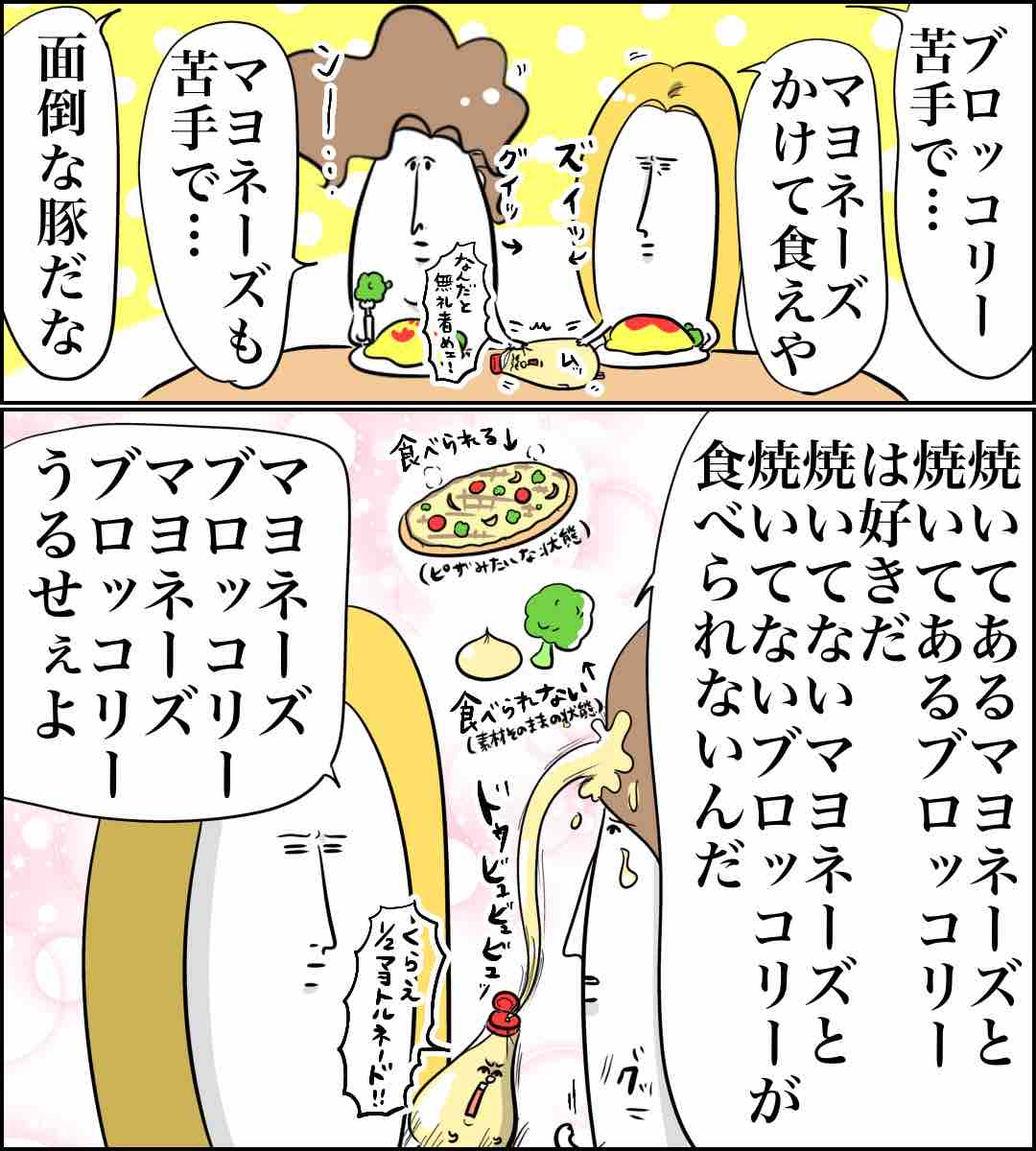 動揺ブロッコリー 2025年02月12日 マヨネーズブロッコリーマヨネーズブロッコリー言いすぎてわけ分かんなくなっちゃった。心はブロッコリーを叫んでいたのですが口から飛び出たのは言葉の合成獣(キメラ)マヨッコリー。これも何かの縁なので(?)これからマヨネーズのかかったブロッコリーはマヨッコリーと呼ぼうと思います。読んでくださってありがとうございました🥺🙇♀️✨!🍎言い間違いシリーズ🌝 📘無料電子書籍Kindle!🌝 「日常漫画」カテゴリの最新記事 タグ :#まむ#まむ実家#ひにゃ#ひよちゃん#まも < 前の記事次の記事 >
