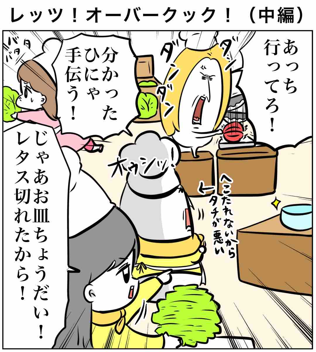 オーバークックが楽しすぎた話(中編) 2025年07月21日 前編はこちら! ゲーム「オーバークック」のプレイ絵日記中編スタートダァ👨🍳🎮!!!!誤操作が止まらないよ。現実だったらとんでもない罰当たり者なムーヴで厨房を駆け巡ってしまいました。3人のシェフが優秀でも4人目のシェフがボケナスだと全ての工程が台無しになる。これがオーバークックの恐ろしいところ。後編はこちら👨🍳 読んでくださってありがとうございました👨🍳🎂✨!🍉完結済み連載漫画!🌝📘広告零 -ZERO-!Kindleまとめページ🌝 「日常漫画」カテゴリの最新記事 タグ :#まも#ひにゃ#まむ#ひよちゃん#遊び#お家 < 前の記事次の記事 >