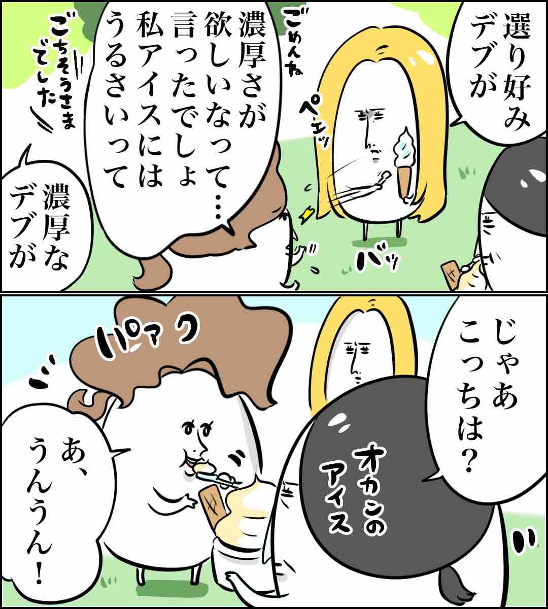 アイスにうるさい私の話 2025年08月28日 甘いものは好まないがバタークリームのケーキとソフトクリームは食べる私の母。(いらぬプチ情報)私はとにかく牛乳入ってれば満足なようです。(この日の気付き)アイスも飲み物もプリンもアメも選ぶのは絶対にミルク味。牛の赤ちゃんかよってくらい牛乳摂取して生きてます。読んでくださってありがとうございました🥛🌝✨!🥛実家の悲惨な話🐾 📘9/26発売のホォン🌝 まむの巣!ポンコツすぎる子育て日記 [ 茹田まむ ]価格:1,650円(税込、送料無料) (2025/7/26時点) 楽天で購入 📘みんなのスマホにそっと住みたいKindle🌝 「日常漫画」カテゴリの最新記事 タグ :#まむ#まも#お母ちゃん#おでかけ < 前の記事次の記事 >