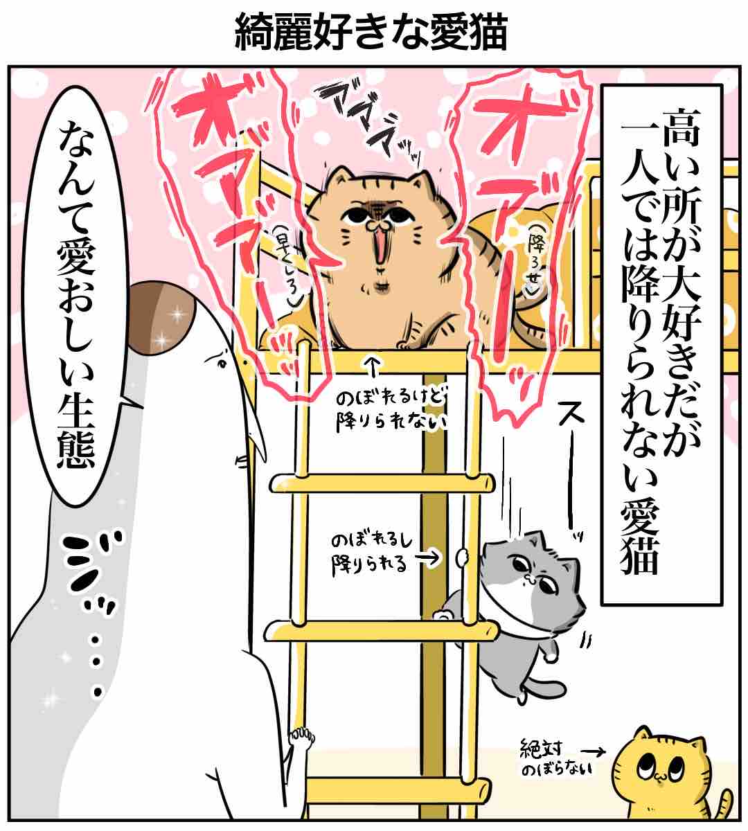 綺麗好きな愛猫の話 2026年02月12日 別に好かれていないということを忘れていてすみませんでした。(悲しい謝罪)自分では降りられない場所によくいるので高い所が好きなんだナァと思っていたのですが、私がうろつかない場所を探した結果その場所に落ち着いた可能性もあると気付き少しダメージがあります。読んでくださってありがとうございました🐈🐾!