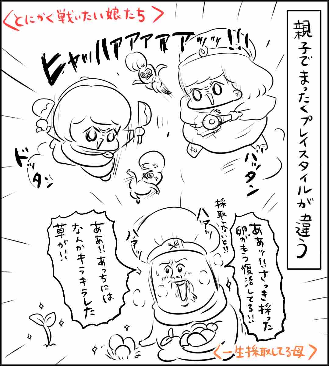 ゲーム「ファンタジーライフi」が楽しい 2026年03月04日 ※ファンタジーライフiのネタバレがあります。※個人のプレイ絵日記として描いています。©LEVEL-5家壊したあげく家主まで屠る気で信じられないほど発想が悪党なのに瞳は真っ直ぐで草でした。私だけ一生山で野草を拾う山菜採りゲーみたくなってます。読んでくださってありがとうございます👨🍳✨!⚔️家族でサバイバルゲーム⚔️ 🕊