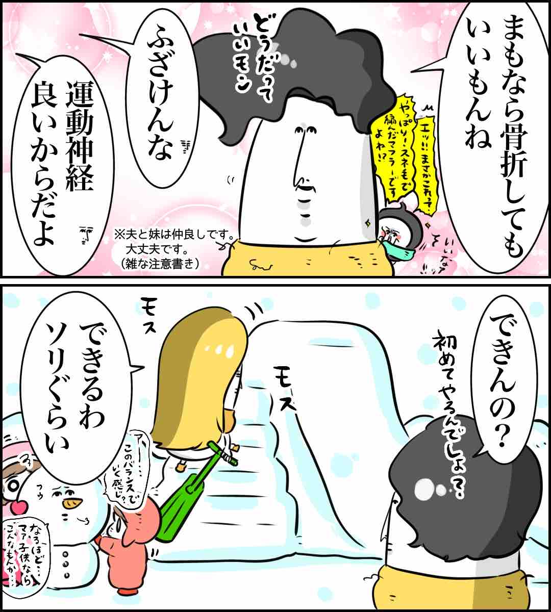 VSソリ滑り【前編】 2026年01月28日 人間三輪バイクみたくなって降りてきた。軽い気持ちでやってんだよこっちは!と文句を垂れながら妹の指示の元一生懸命に雪を盛りました。後編はこちら! 読んでくださってありがとうございました🕊✨!👨🍳家に入って皆でゲームをするまでがセット👨🍳☃️ブログが本になりました!☃️🐣ブログで人気だった絵日記をオールカラーでギュッと収録!🐣描きおろしは姉妹の出産の思い出40ページ! 「遊び」カテゴリの最新記事 タグ :#まむ#ゆんず#まも#ひよちゃん#たまちゃん#ひにゃ#イベント#遊び < 前の記事次の記事 >