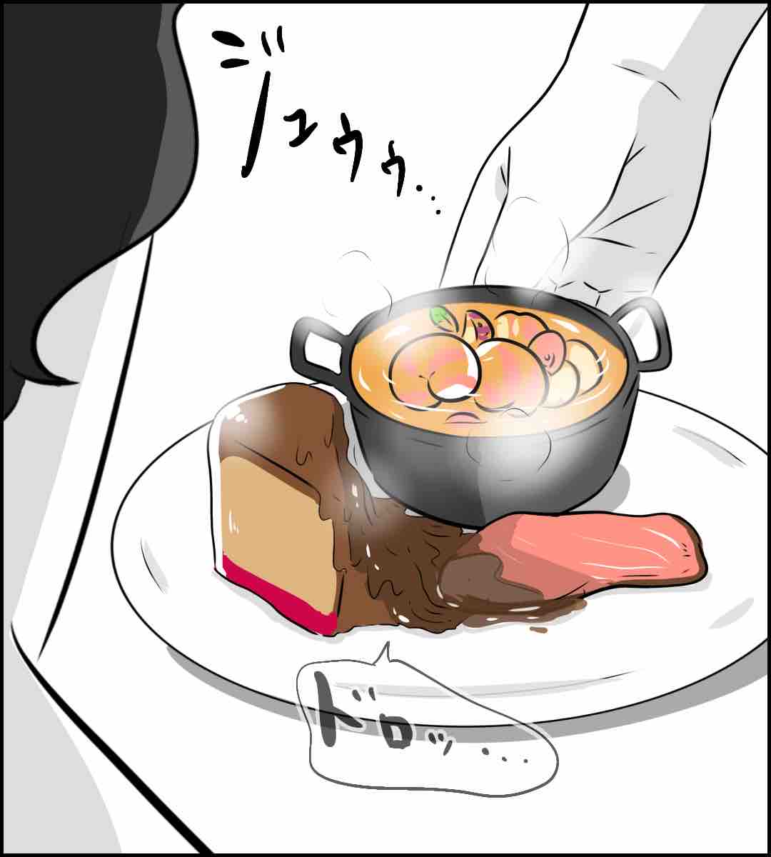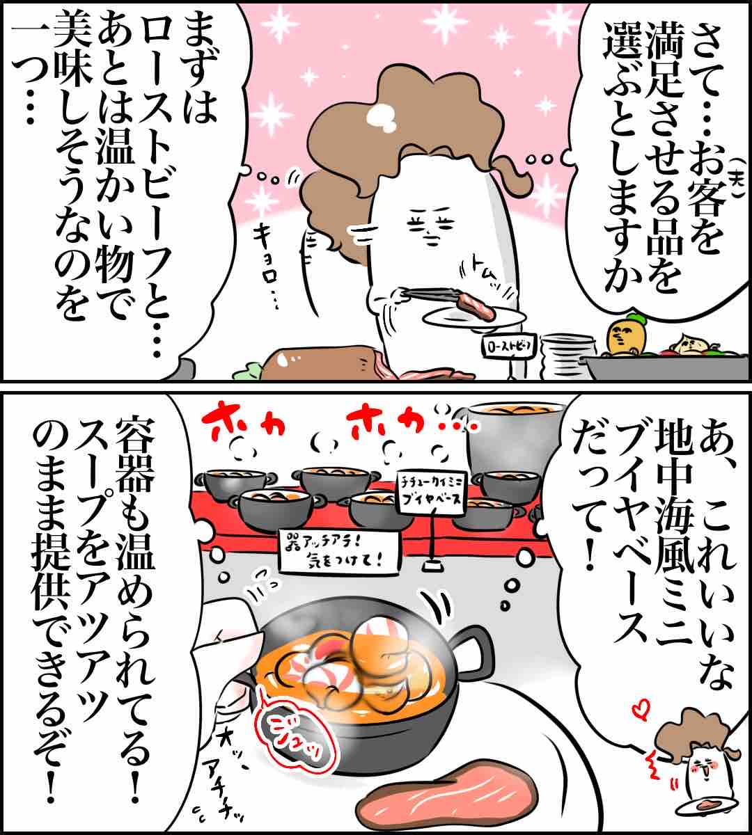 ビュッフェを任された話 2026年02月04日 こういう料理ですの顔で提供した。完璧な盛り付けをしたはずだったのに席に着いたら急にジャバジャバになっていて少し動揺したのですが、なんとか機転をきかせて料理名を告げることができました。(別に何も成功してない)これは余談ですが、私はビュッフェの際必ずデザートから食べます。(雑談)読んでくださってありがとうございました👨🍳🍽✨!👨🍳友達とファミレスに行ったときの話🍽 💃